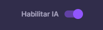 El selector "Habilitar IA" permite decidir cuándo las funciones de IA estarán activas para toda la organización. Si está desactivado, los usuarios no tendrán acceso al panel de IA ni a sus características relacionadas.