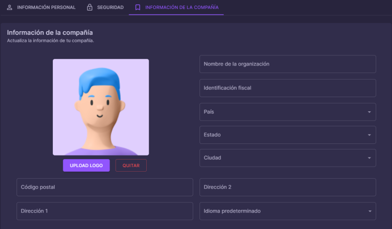 Este módulo está diseñado para que los usuarios puedan visualizar y editar su información de perfil y realizar ajustes de seguridad según sea necesario. También permite editar la información general de la organización, como asignar el logo de esta.